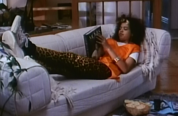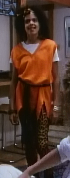 Someone on the internet once said that Lucy dresses “like a homeless pixie”. Ha! I coudn’t agree more here. With a gold head scarf, a white tee under an orange tunic cut like the Flintstones’ clothes, leopard print leggings, and white tennies… Lucy is a little disorienting. However, this look is a classic in my eyes. Mucho respect.