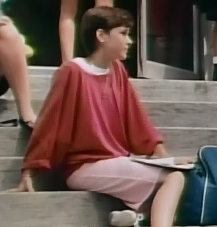 I really enjoy this dark pink drapey shirt with a pale pink skirt, and of course white tennies and a Caitlin headband.