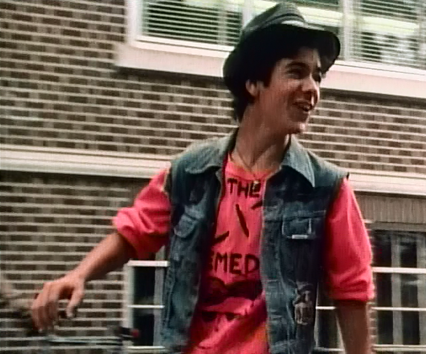 Joey gets formal for the dance in one of those “funny” t-shirts where there’s a tuxedo graphic on the front. The cutoff sleeves are a nice touch too.