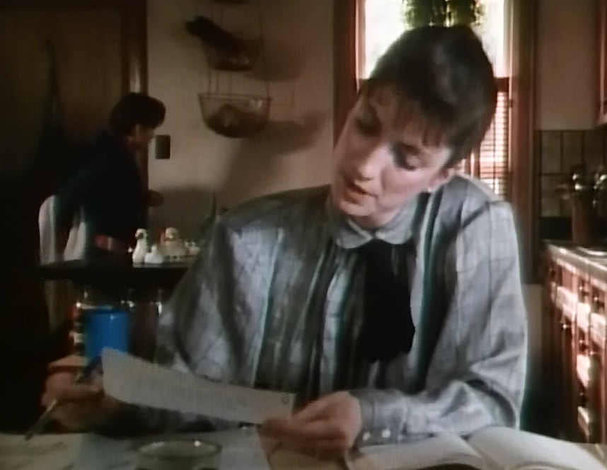 Caitlin’s mom is all like, “Yeah, we should hide that pregnant girl so she doesn’t look so conspicuous.” Her high and tight collar bow reflects her uptight personality but adds a slight bit of interest to this grey flowy blouse she’s wearing.