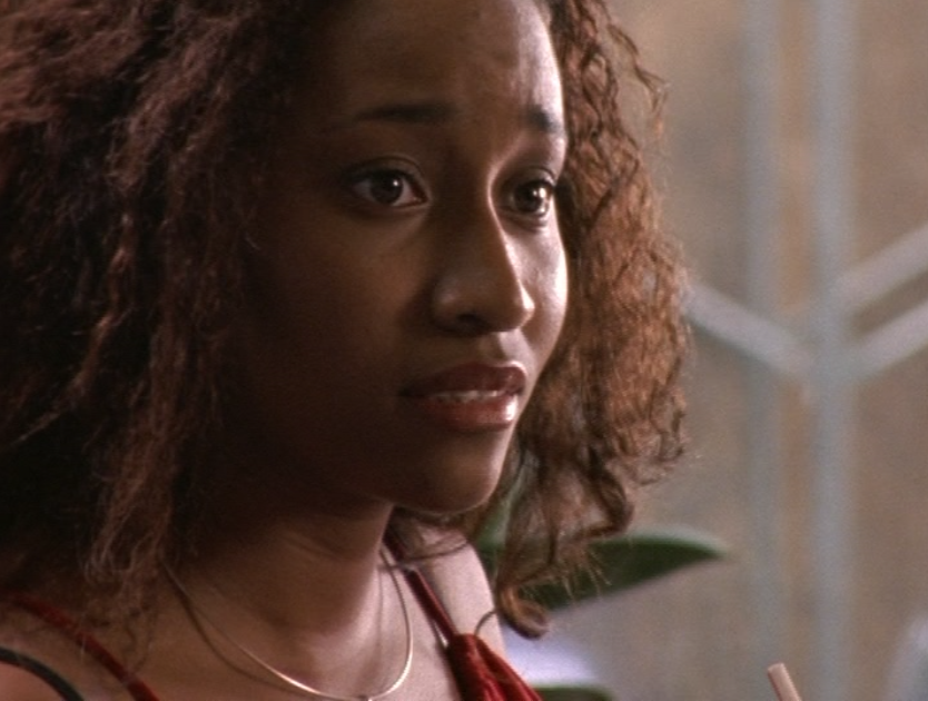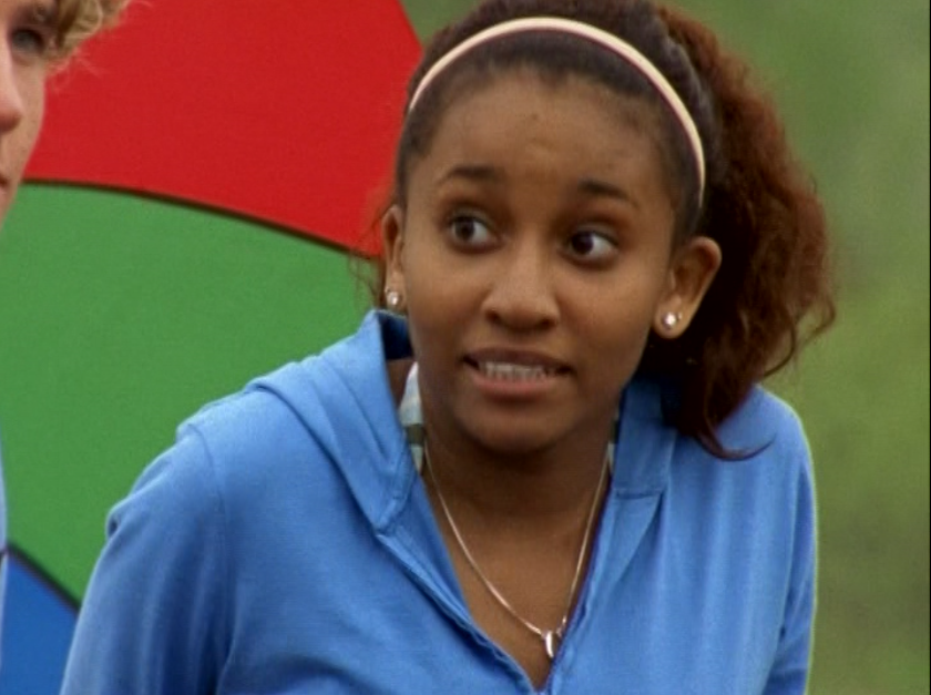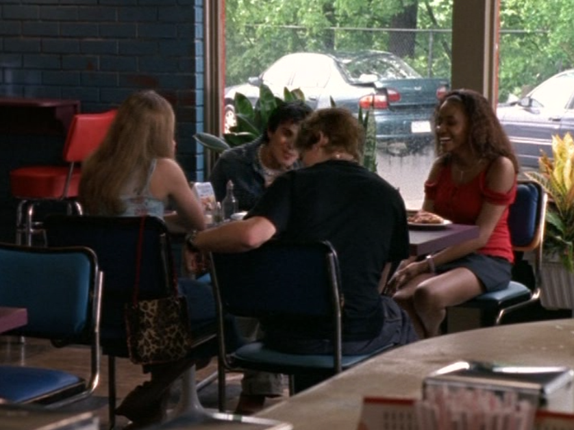 Poor Hazel. She never bothered nobody. She’s in the beach crew wearing a swim top, capri pants, an open zip up hoodie, and a headband and ponytail. Then she’s seen in class, wearing this blouse that I don’t even know how to describe. But THEN, she goes on like, a tester date with Marco and it’s so sad because she is so down for it, and Marco is totally not. Aw, she’s being so nice and open. And the outfit, the RED! Hazel looks amazing in red. She’s wearing a cold-shoulder top as they call it these days, with what looks like a black miniskirt. I just feel really bad for her here.