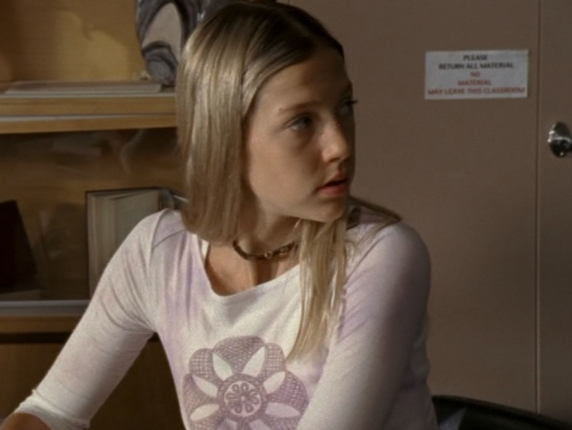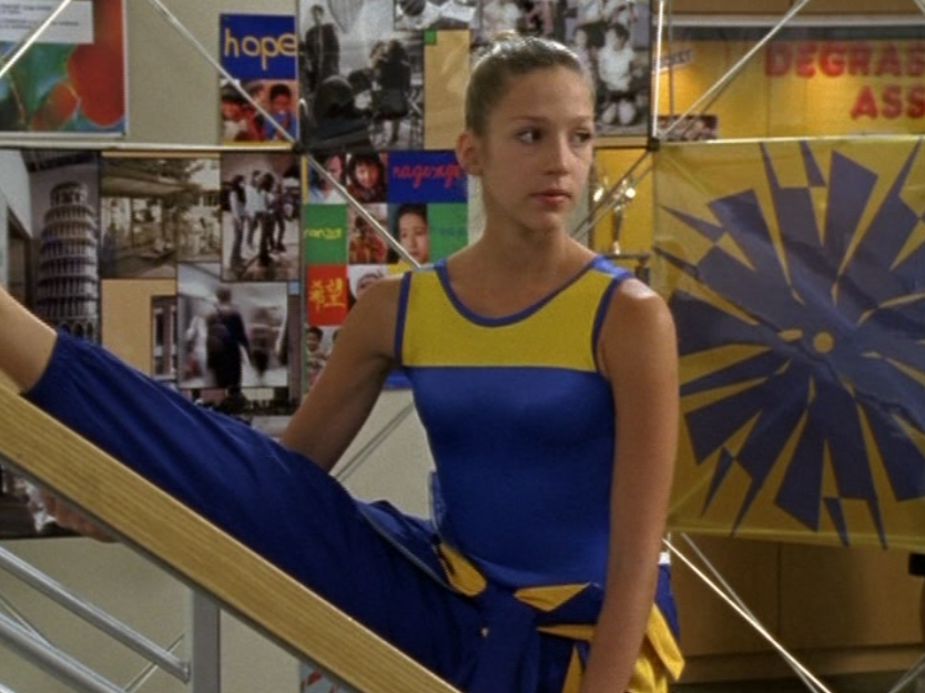 Emma is mostly wearing gymnastics clothes in blue and gold. We also see a hippie shirt with a mandala on it. But her role isn’t too big right now, just to scare Manny into thinking she might be pregnant. lol.