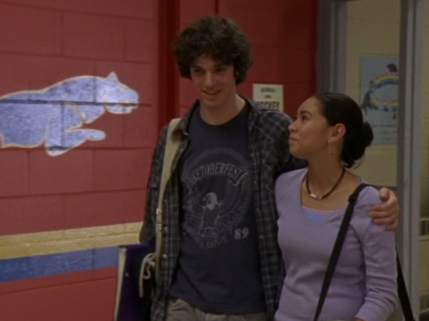 Manny is not dressing sexily for the moment, but things ARE looking up. Briefly. Craig is suddenly interested in her again. Her first outfit is a lavender top and a toned-down low bun in her hair. The second outfit is a significant one in the files of my brain. Underneath is a long sleeve pinky-red shirt, and over top is an awesome red jean jacket and those square hoop earrings. And finally, she’s dressed for an abortion in a nice track suit.