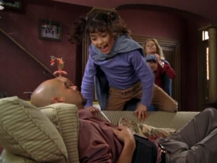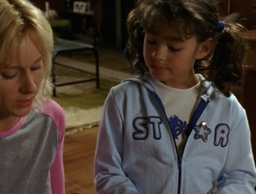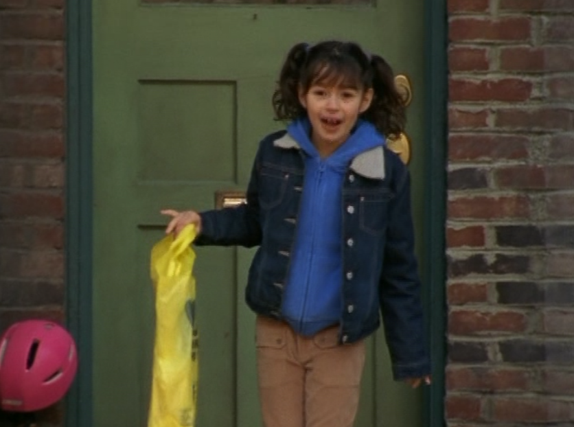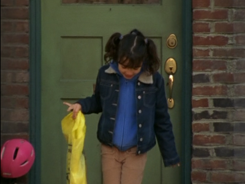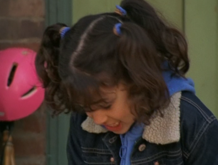 Haha, this is the episode where Angie is a little brat. She’s sporting three pigtails. This three-pigtail thing has yet to completely disappear from the show. I love it. Anyway. little kid fashion isn’t the most exciting but she wears jeans, long sleeve tees, zip up hoodies, and a jean jacket throughout this episode. More interesting is that venom tongue spewing disrespect.