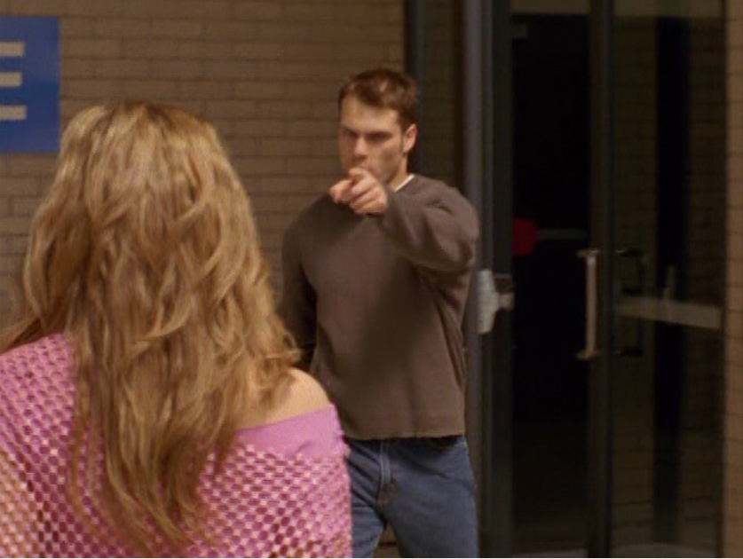 Despite the heavy subject matter of this episode, there are some LOOKS served and my job is to deliver them to you. Unfortunately we have to start with the villain of the episode, DEAN. And this whole time, Dean had a last name – Walton. First this 30-year-old high schooler is shown in his red Bardell soccer uniform, and then all he wears to the house party is a grey shirt and probably some jeans. I mean, the fact that we know so little about him just by looking at his outfit, probably adds to that whole “stranger” vibe in general.