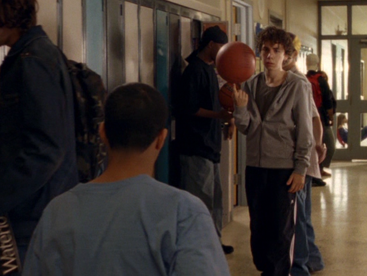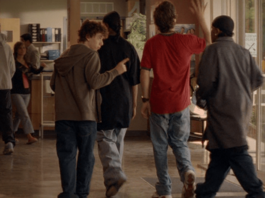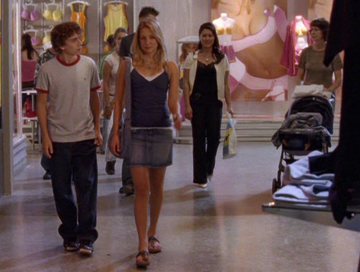 Ew, time for Derek and his date with Emma. I swear, he looks like a child next to her. He wears a tee with cutoff sleeves first. Then he wears an American Eagle ringer tee on the date. Also, Derek sucks.