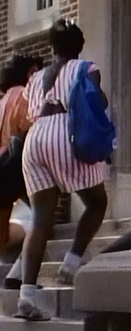 However, in Kiss Me Steph, he is wearing what looks to be super tight corduroys, which take all the attention away from his sporty jersey.