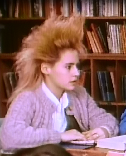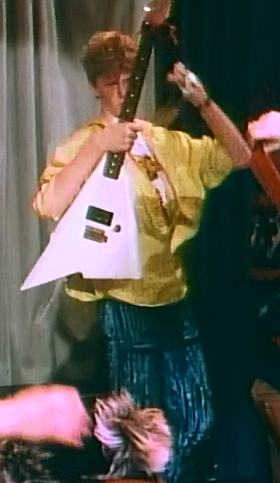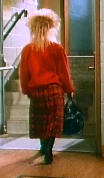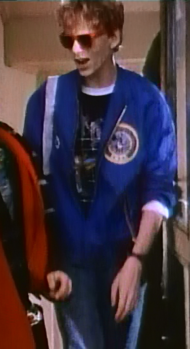 This is where we really get a sense of Mike’s cool 80s rocker style. I love the white tee with cutoff sleeves.