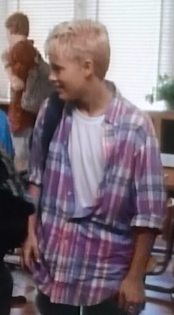 Simon’s soft pastel colors worn in this episode really illustrate his gentle and naive personality. I just noticed this blue and white checkered button down doesn’t have the typical folded collar!
