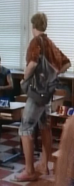 Tim is definitely versatile. You never really see him wearing one style. First we see him in this athletic sleeveless getup which I think kind of makes him look like a badass. Then he’s in a colorblock tee, holding a baseball glove. I guess he was playing catch with Nancy Kramer.