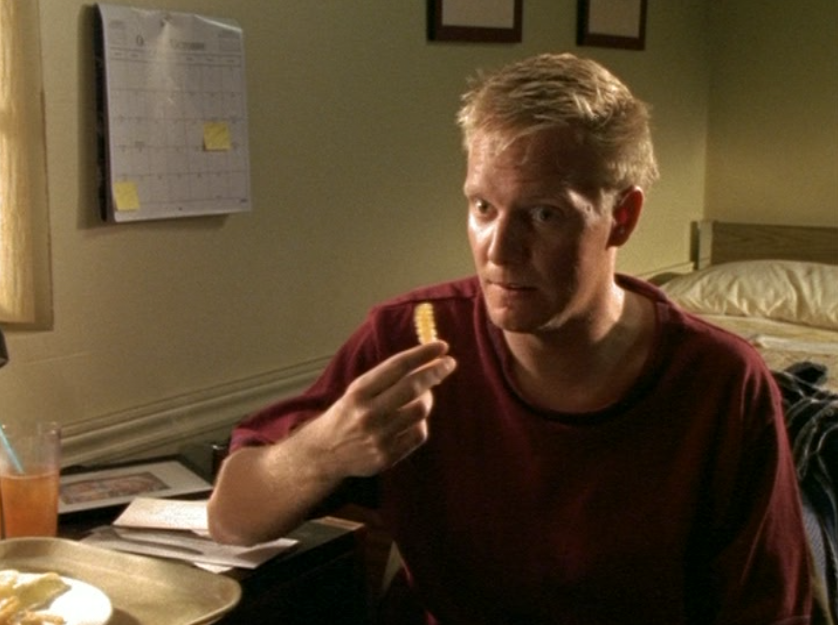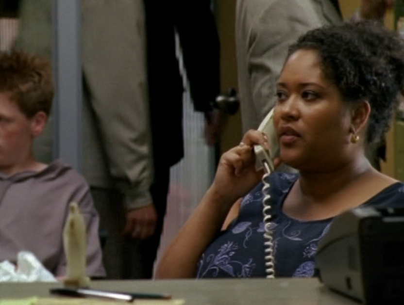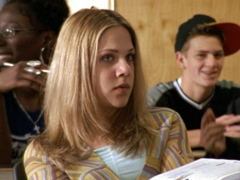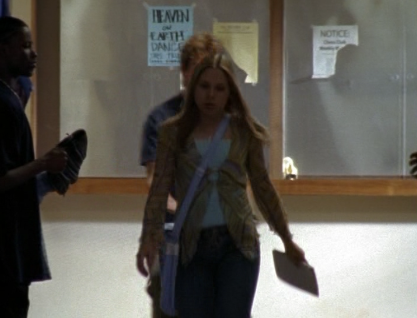 It’s time for the random shots! First, Shane’s like, caretaker lady, or is it just one of the nurses in the place? I don’t know. But she’s very stressed. She wears a frilly blouse, a pencil skirt, loafers, and a tight bun. Next is the train station man, wearing a vest and tie, telling Craig and Emma that there are no more trains back to Degrassi Street. Then I got this hallway shot, featuring not only Spinner’s baggy silhouette, but also this cool alt girl wearing a plaid skirt and arm warmers. Reminds me of my own fashion choices from those days. Next is Ms. Smith, the Doris Bell of DCS. I hate her so much, she’s so mean that I feel a chill when I gaze upon her. She wears an updo and a floral top. And finally, stressed out worried lady is back, to pick up Shane, just wearing more boring stuff.