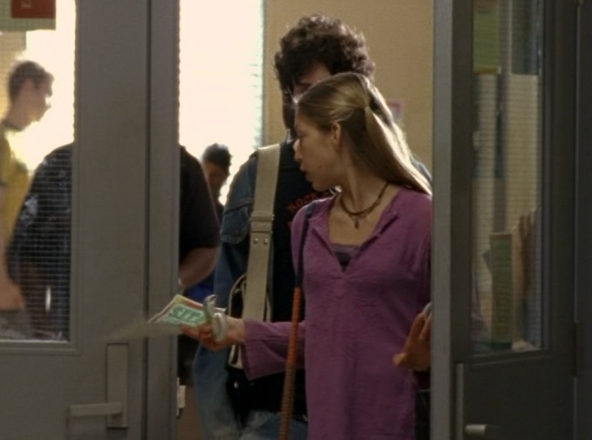 When I think of Ellie, my first thought is usually referencing her in this episode. For two reasons: 1, her style is iconic here on this day. And 2, I completely relate to the way she feels here in this episode. It’s almost, potentially, social anxiety. I mean, I know the script probably intends for us to think she’s just all bent out of shape over Marco. But I see more than just that. I see a girl who blatantly doesn’t fit in. A girl who questions her outfit as soon as she steps outside and sees the people she’s with. A girl who wants to have fun but doesn’t know how, like she can’t find that lightswitch inside of her to switch “fun” to “on”. A girl who’s there, physically, but not contributing to the socialization, and not necessarily wanted. I relate to that feeling all too well, of wanting to have fun, to be fun, but not knowing how. What can she possibly say to this group of friends chatting? Nothing. You know?