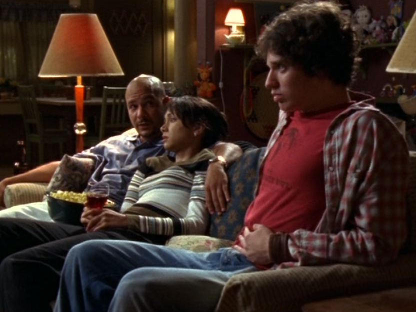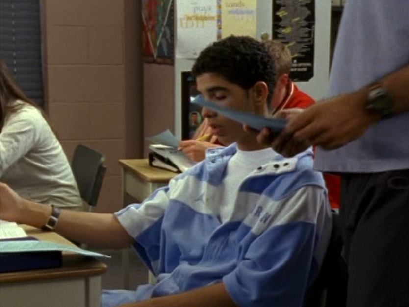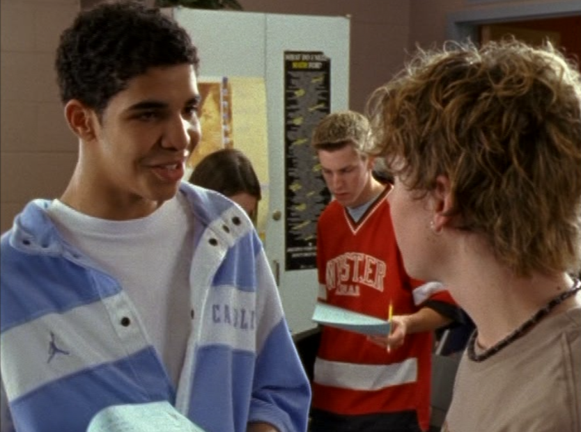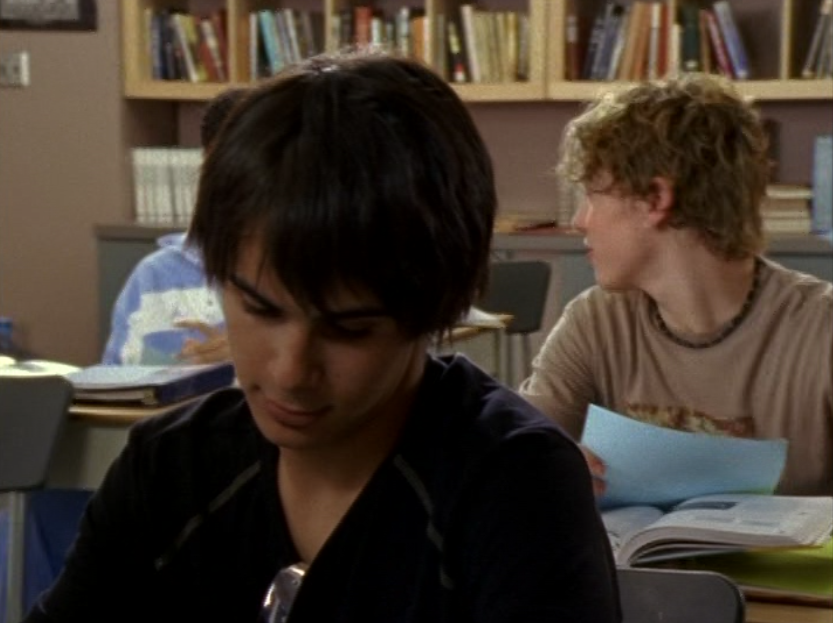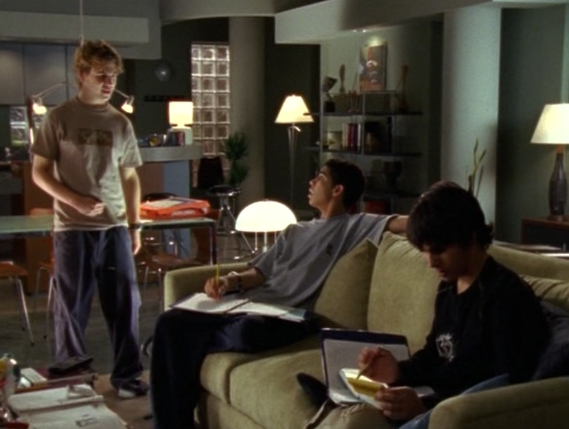 Here’s some more Spinner homophobia for you all. He’s got filthy-looking hair, a muddy-colored tee shirt, and is complaining of spray cheese poos in PJ pants at Jimmy’s. And finally, he’s seen wearing that blue skateboarding tee back at school, still trying to recover from his acute homophobia. I love when Marco’s basically like, “Listen bro, you aren’t good-looking, so don’t worry about it.”
