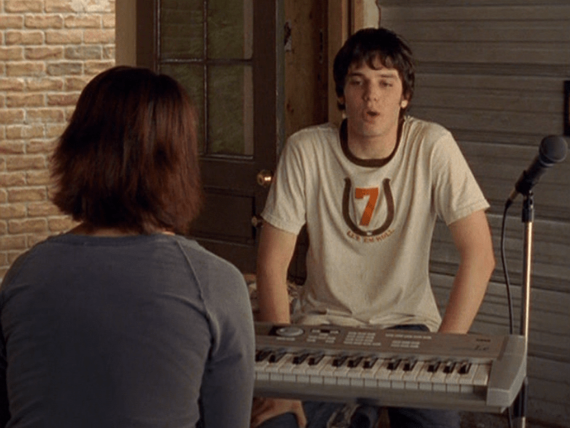 Here’s Craig’s super-expensive “Fender-Strat!” as Joey calls it. Also Craig wears a series of outfits which I will just describe in a general manner. Leather bracelet, leather jacket, jean jacket, assorted graphic tees, and though not pictured, undoubtedly some wide leg jeans and Chucks. I’ve said it before and I’ll say it again, I admire Craig’s style at this point because it’s realistic teenager rocker guy attire. Subtle. REAL.