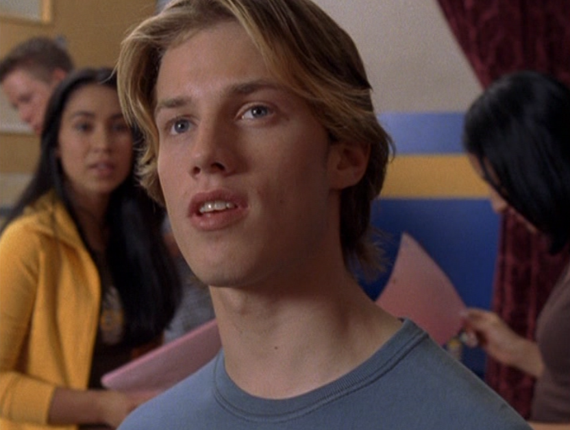 Kwan has let her hair down, which looks beautiful! And she wears a classic Kwan shirt, a v-neck 3/4 sleeve blue top. I keep saying this, but I know I have transitioned from the age of the students to the age of the teachers when I realize Kwan is actually super hot.