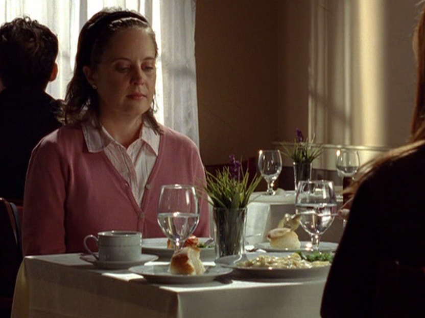 Okay, okay. I do feel a bit sorry for Ellie’s mom. A little. Look at her trying so hard. Awww. She looks all proper in his pink cardi over a button down, with a headband and earrings. I like that she looks a little more put-together perhaps, but she also dresses in a way that kind of communicates her need for a proper appearance. The last outfit is her in a peach button down, that classic Caroline kind of look.