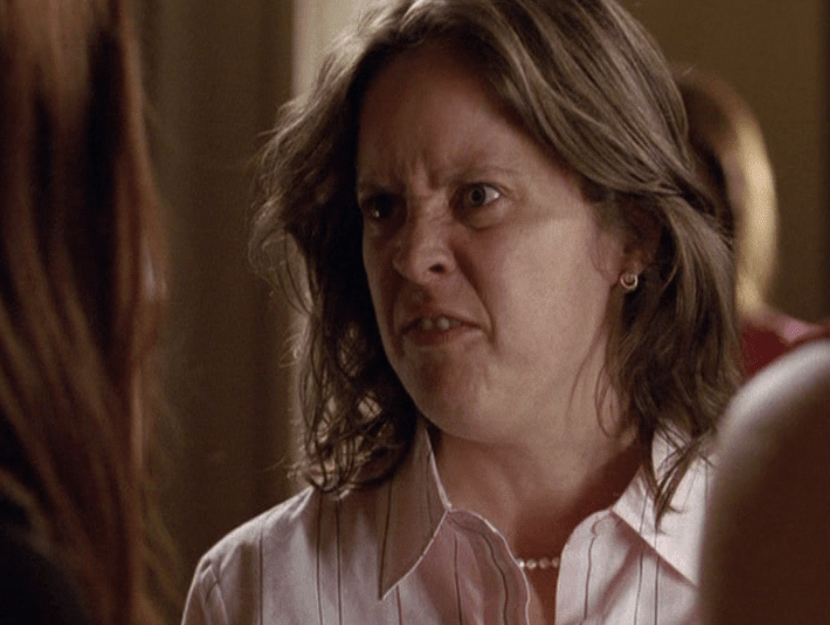 It’s so funny, when I think of Ellie’s mom I think of this color. This peachy pink color. And that’s pretty much all she’s wearing here. Also with pearls of course. That definitely is a nod to her desire to keep up appearances. The other thing I think about when I think of Ellie’s mom is her saying “purry-winkle blue”.