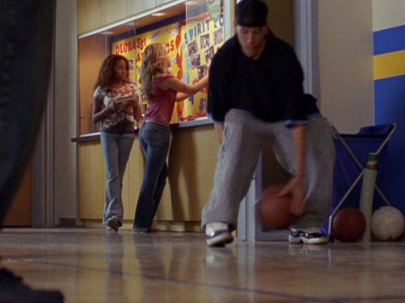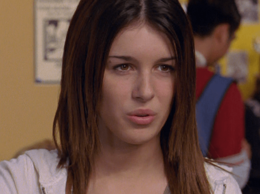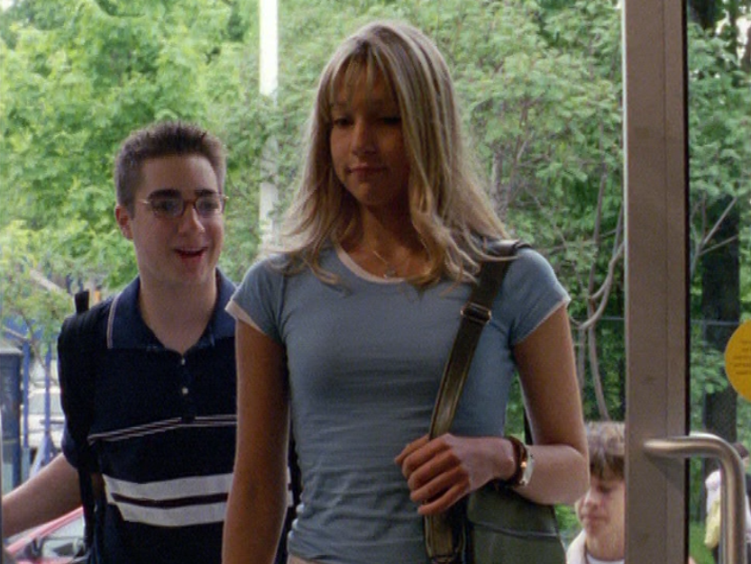 Jimmy isn’t the MAIN bully, but he’s a participant here. Fashion-wise, he is wearing a lot of gray, including a tee and a zip-up hoodie, Degrassi’s favorite clothing item.