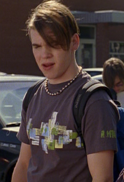 Yeouch, what a post to come back from vacation with. Sooo yeah, this is Rick before the world is changed forever. First he’s wearing a freaking beret – you may know how I feel about those – with a messenger bag and just a lot of grey. Again, STILL don’t know why he came back to Degrassi all hunky dory, and DO NOT know why he’s smiling right now. The fact he keeps crawling back to each new day thinking things are going to go differently astounds me. Next he’s in a tan shirt over a brown long sleeve and khakis. Hard to imagine he’s about to break.