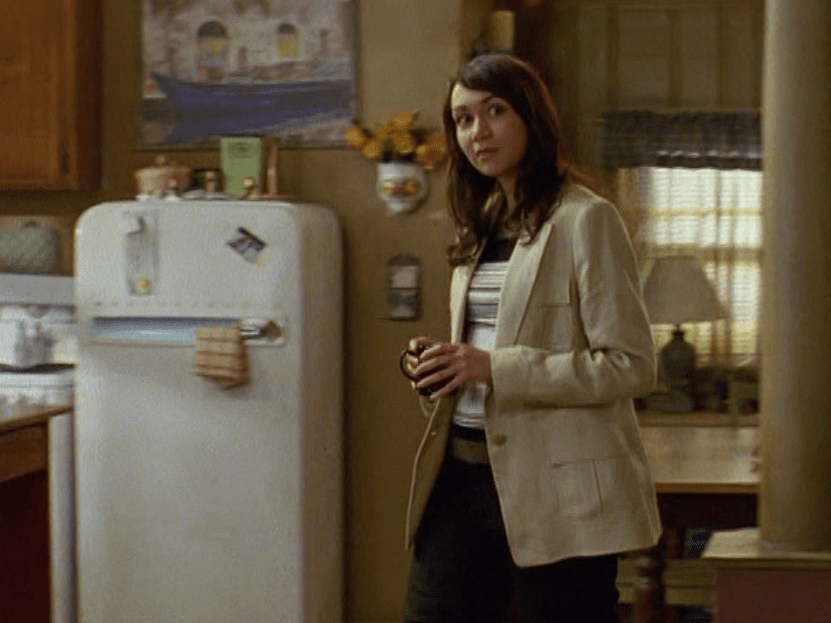 Okay, and you know what? My fashion commentary is actually appropriate here because this suit, makes me feel. I don’t know WHAT it is about him getting dressed by his mommy in this oversized, clunky, boxy navy suit that makes me want to cry. No one else is dressing up for trivia night – but this is super important to Rick so he’s dressing for it like it’s freaking church. But, he doesn’t fit well into the suit. He doesn’t really have a sense of style. The suit is like, not cute – if I recall, no one would be wearing a navy suit about this time period. But, this was his dad’s suit so it’s extra special. Damn, which makes it hurt even more when the suit gets covered with paint. But let me back track and just say, when someone dresses up for anything, I just feel kind of sad. It’s their way of wearing on the outside how they feel about something on the inside. And aside from all of Rick’s problems, both in his brain and with his social existence, he was excited about trivia and put on this giant dorky suit expecting the best. Maybe that’s why dressing up gets me – they’re expecting the best, ya know? Dressing up looks like hope, like confidence. And to see it all come crashing down, is a little sad on almost anyone. I empathize with Rick, a LITTLE, but don’t excuse anything of course.