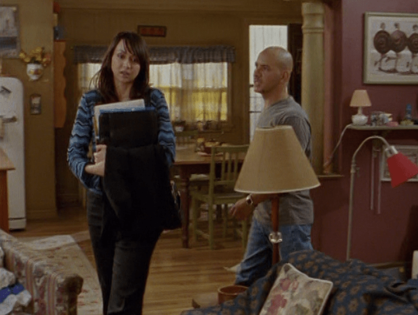 Ah yes, it’s time for more sad adult Joey. And he’s even sadder than normal, because his used car lot is going down the toilet. This is where Craig takes it upon himself to summon Joey’s ex girlfriend Sydney, a realtor, to sell the house in hopes of keeping the family afloat. So stupid, what high school kid would do that? Sydney isn’t even a home realtor. Eyeroll. First, Joey is in a suit, and next, he’s in a v-neck tee and jeans. His style is just so… barren. Like his life.