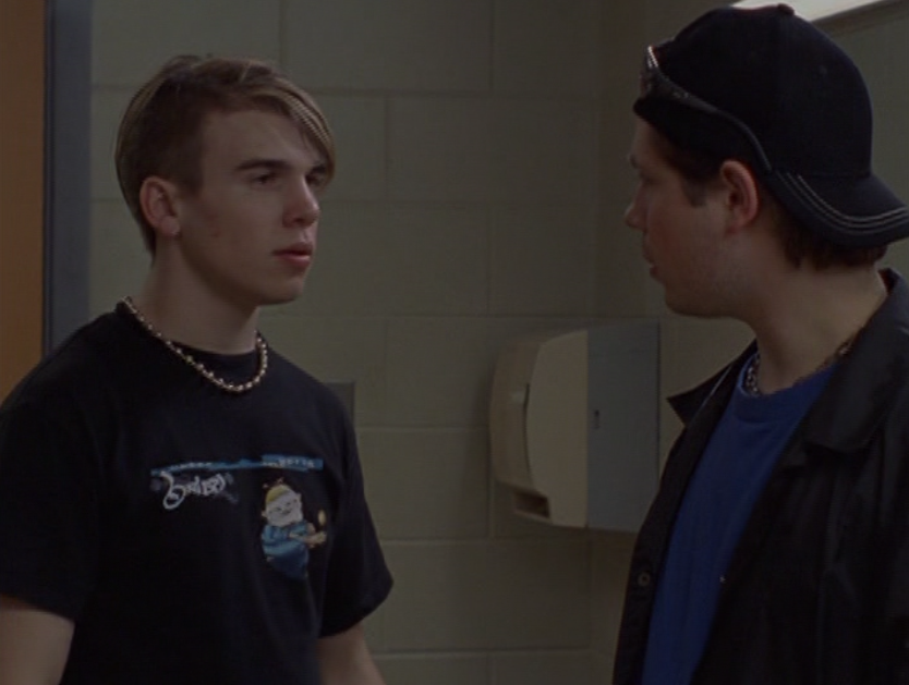 Poor Toby. I hate that we the audience never really get to explore inside Toby’s mind, ya know? Like we are hardly ever in his room. We never get to unpack his trauma. We never get to know his deepest feelings. He’s treated like a prop, even now, being so close to one of the most important storylines of the show. Justice for Tobs! He’s got his spiky hair, his rectangle glasses, and his sling from being beat up for being friends with Rick. Ugh! Also, why tf did Toby never like, get revenge on Spinner and Jay? At the very least like, I wish karma could have struck. Well, did it? I mean Spinner went through some terrible shit. But Toby still has more terribleness awaiting him so keeping karma score will be a task. Anyway, he wears red and an overshirt and, just.. poor Toby.
