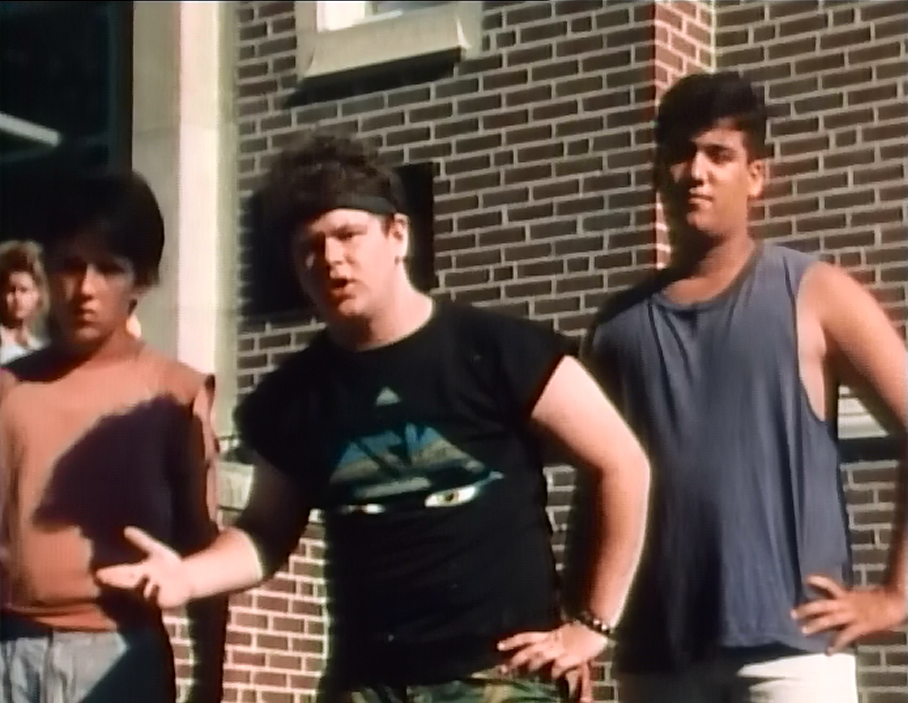 Post-fight, Dwayne gives Joey the stinkeye in a plain red tee. A little less intimidating, but at least he’s still wearing the tough-guy bandanna.