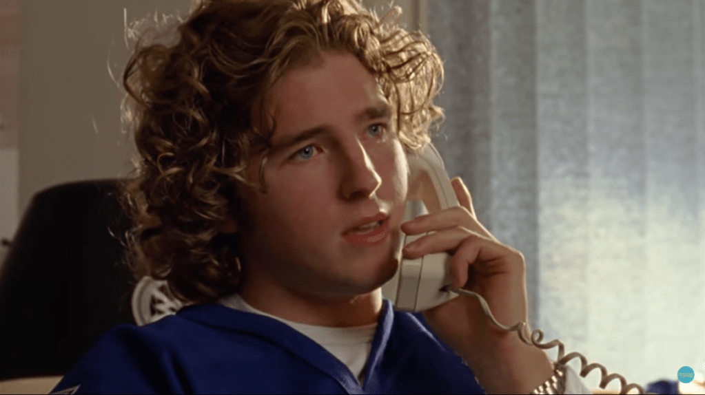 I’m pretty sure this is where Dylan is saying that Mr. O is a predator, here at the movies. Has he dyed his hair red here?! I can’t really tell. Anyway, his hair is curly and all that, and he wears an athletic-looking half zip pullover, and I don’t really know why I think Dylan is sort of cute now in my old age.