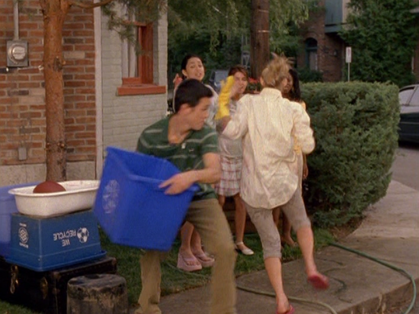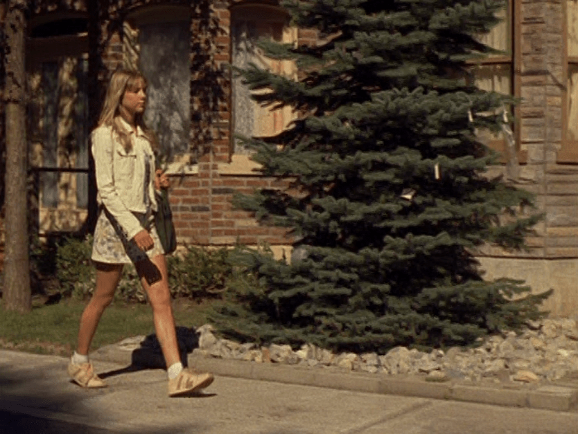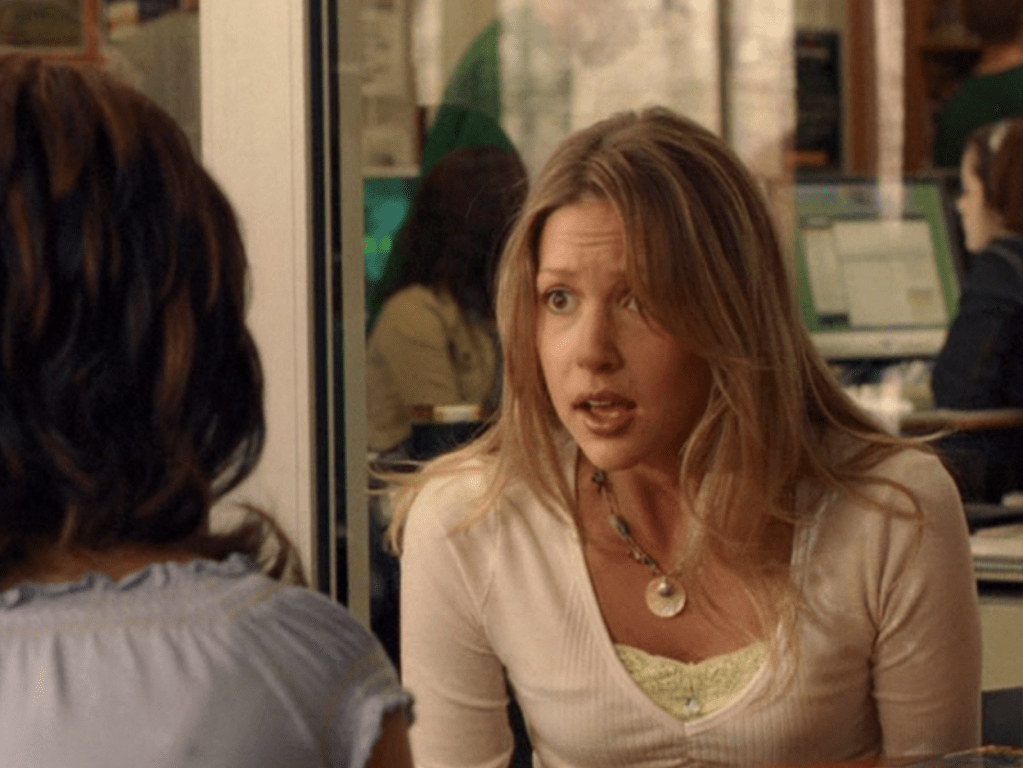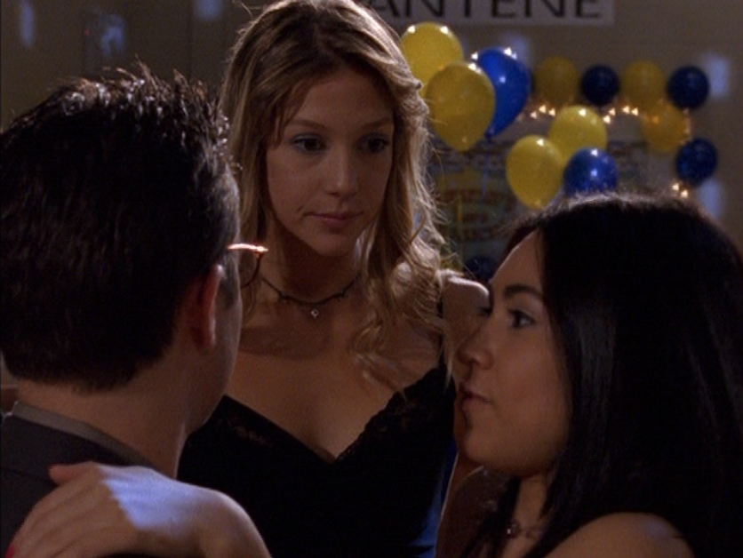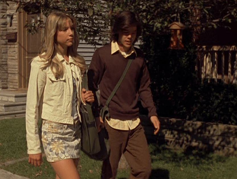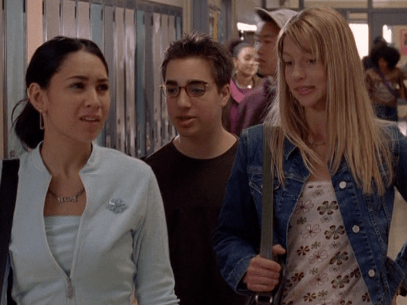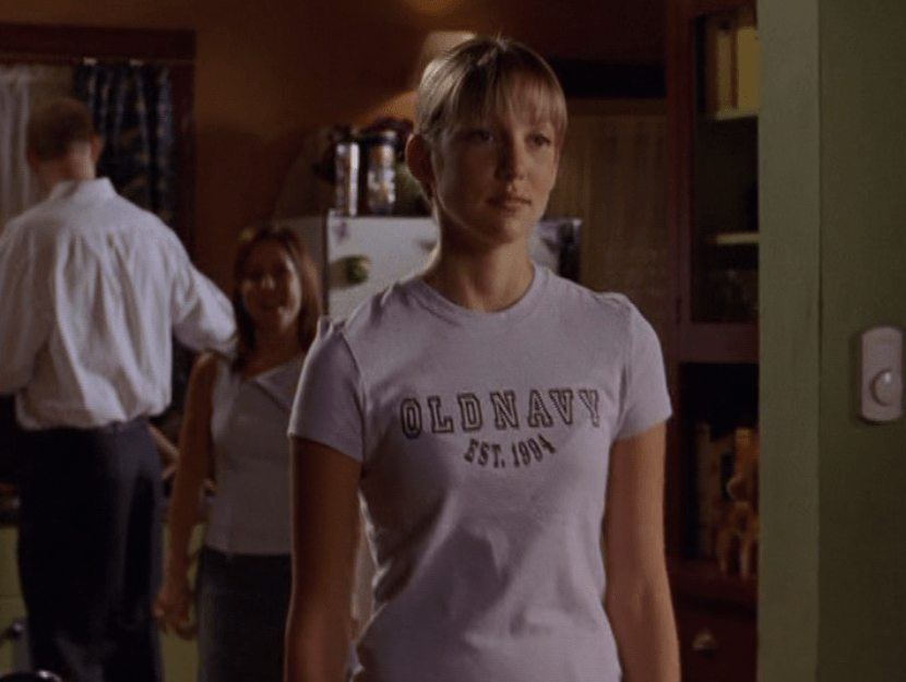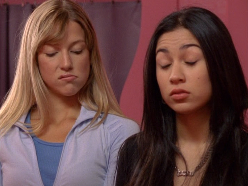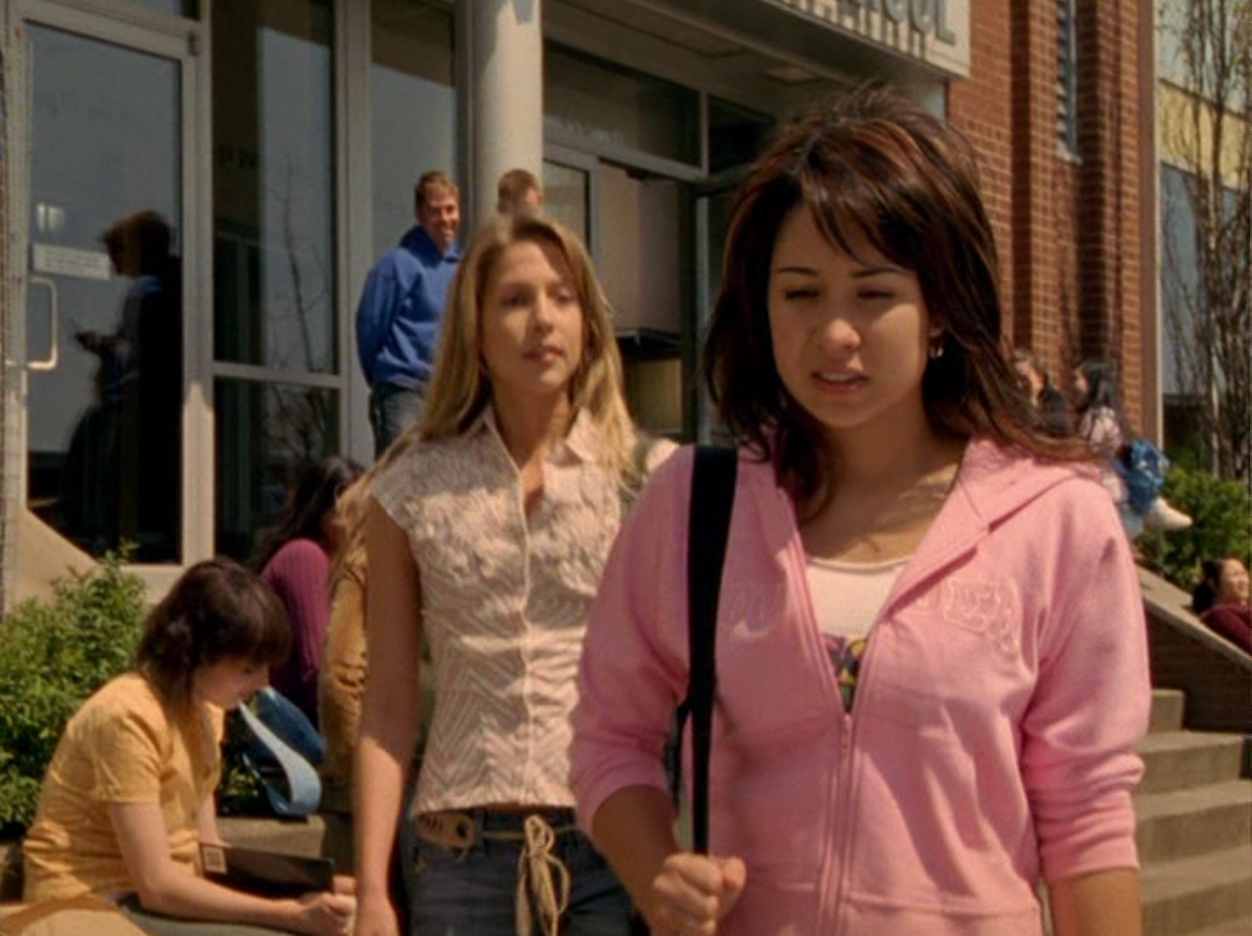 Okay, I’ll say it. Season 5 Emma is HOT. And yeah, this episode is partly about beauty standards, and she is made to fit into that ideal 2000s look, so I hate to praise the toxic beauty standards so much. But I don’t know, something about S5 Emma, man. She’s glowing. And speaking of glowing, next season they put some weird glow filter on the girls, so this is our last natural era. Anyway, first is a rare swimsuit moment with Emma and Manny. Emma’s suit is adorable, with yellow and pink polka dots. She also wears some oversized rainbow shades. At school, Emma continues to sport the skin-tight Lululemon, and has almost a grungy makeup look of brown smudged liner and a darker lip. At the Hot Girls Party, which looks a lot like Jimmy’s house, her hair is perfectly curled and she wears layered camis as we did back then. She also has on this miniskirt that’s kinda like khaki but with a floral print on it. But seriously, the 2000s were skimpy as hell. And in the most formulaic way. To where, if, you ain’t got it, you can’t fake it. I feel like nowadays we have options and can play up the parts of us we’re proud of.
