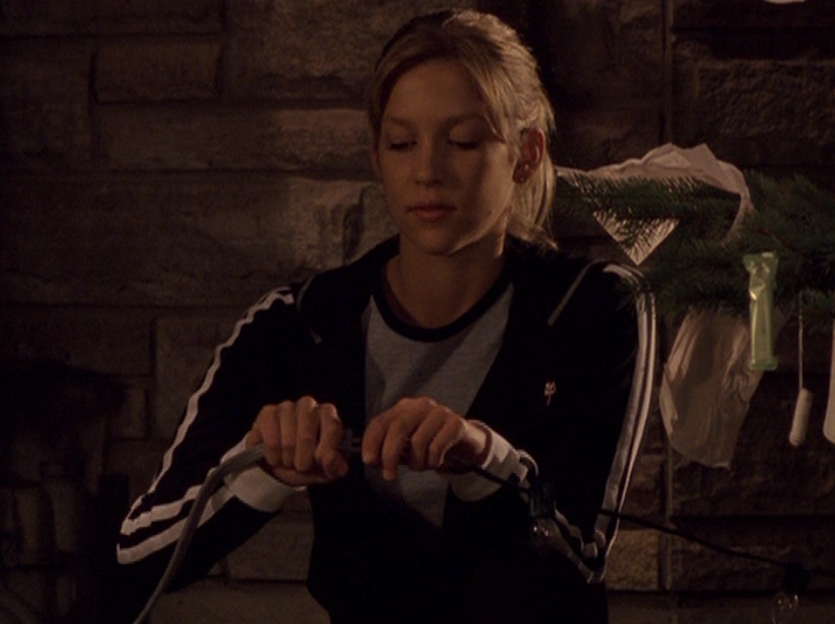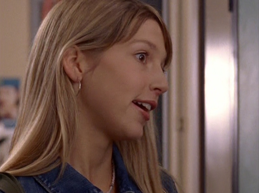 Emma is only seen for a moment here at the blood drive, telling Spike to STFU while she’s getting needled. Emma seems to be growing out those 90s bangs, and she wears a purple zip up hoodie.