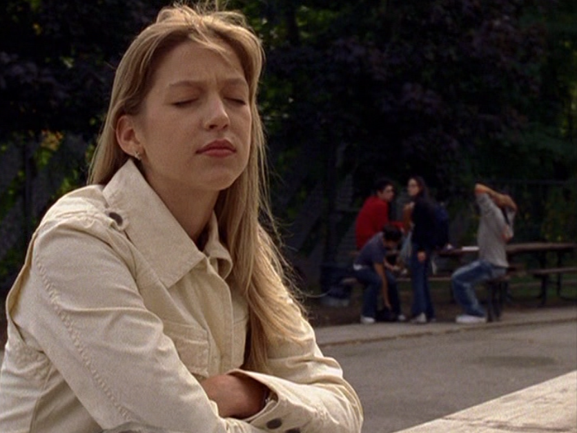 Emma time! She first appears in classic Earthy Emma tones, sporting some athleisure and her classic trusty bag. Ew, and this is where Craig and Manny randomly decide to hook her up with Derek. My soul shrivels like a raisin at the thought. How do these two jokers even KNOW Derek? They say through Jimmy. But come on. It doesn’t work. Next we see her at school wearing a 2000s skin-tight-t-shirt that says Free Spirit, as well as some cropped jeans and flats. Next up is a tie-dye tee an some jeans with patches on them. She’s resisting the temptation of Peter. Look, Peter could be seen as somewhat enticing and mysterious here in Season 5. But BRO does he take a nosedive in Season 6. More on that later.