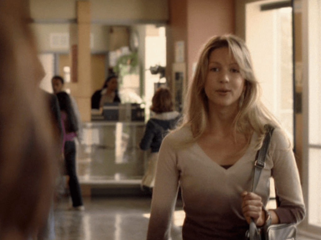 Our BABE of Season 5 is back! Okay, tbh there are many babes in S5. But I just love Emma’s era here. Her hair is bouncy; she’s out of those 90s bangs and excessive athleisure wear. First she’s in her PJs which consist of a spaghetti strap tank and PJ pants. Then she wears a white v-neck layered over a cami, with a shell necklace. Her style so interestingly conveys “yeah I’m a hottie but I also love the environment.” Maybe it’s all the earth tones. Speaking of earth tones, the next ‘fit is this sweater that ombre transitions from beige to brown, paired with brown pants. This is where she condemns Manny. But as we can see, that doesn’t last long because here they are the next day holding hands at school. Oh lord, the chest ruffles on this shirt. Not to blog but I was the QUEEN of chest ruffles in college in the late 2000s. Emma makes it boho by adding this leather tie belt to her low-rise jeans.