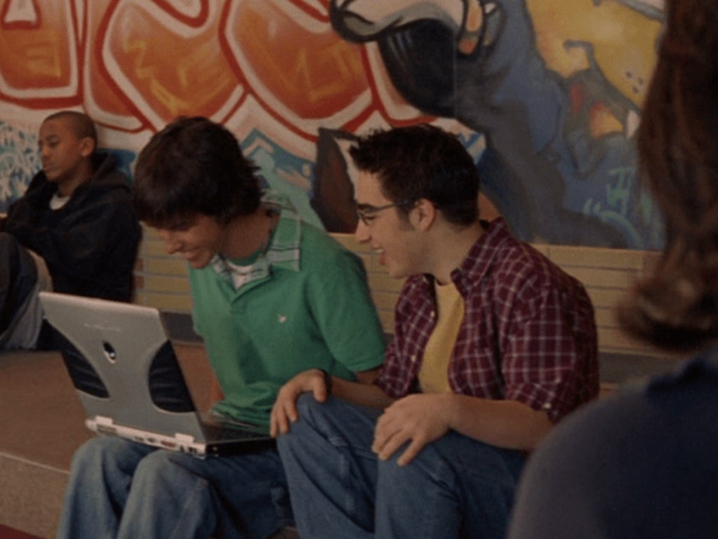 More evidence for JT’s preppy-boy stage, as demonstrated here with these layered collars and shaggy hair. OMG and that butt-sniffing video he is watching really grosses me out. Still, isn’t it wild that we have been watching funny memey videos on the internet since at least 2005? Isn’t that when YouTube was created? Wild. Wait, JT isn’t even hooked up to the internet here. He must have downloaded that sh*t on KaZaA or something.