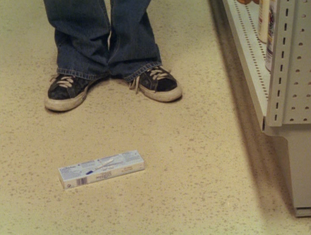 Somehow JT is wearing the same outfit again in this first frame that he was wearing last episode. But okay. He and Liberty are just two miserable peas in a pod. He’s wearing the preppy chic while she’s in… haha PREGGO chic! I’m hilarious. Anyway, he is seen in layered shirts, the swoopy hair, casual khakis, and even a freakin sweater vest, something which I don’t think I ever saw in real life during this time. Also, just the other day I was telling my friend, the further away we get from this era, the MORE AND MORE I hate this hairdo. Which is not typically the case for vintage styles! haha.