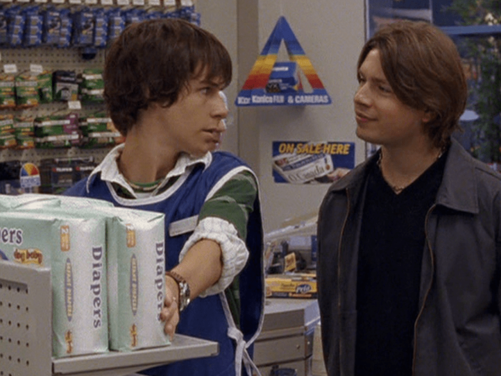JT’s life is shifting. Just when he thinks he finds out what he wants to do, which is entertain children, his life takes a sharp turn since he impregnated a girl and now has to finance that. Apparently being on TV doesn’t pay as much as stocking shelves so, the pharmacy at the mall it is! As usual, he’s preppy with that swoop hair, but we also see him channeling his inner Blue’s Clues guy… and he also dressed like a turkey. But then, he had to shed the turkey costume for the blue vest.