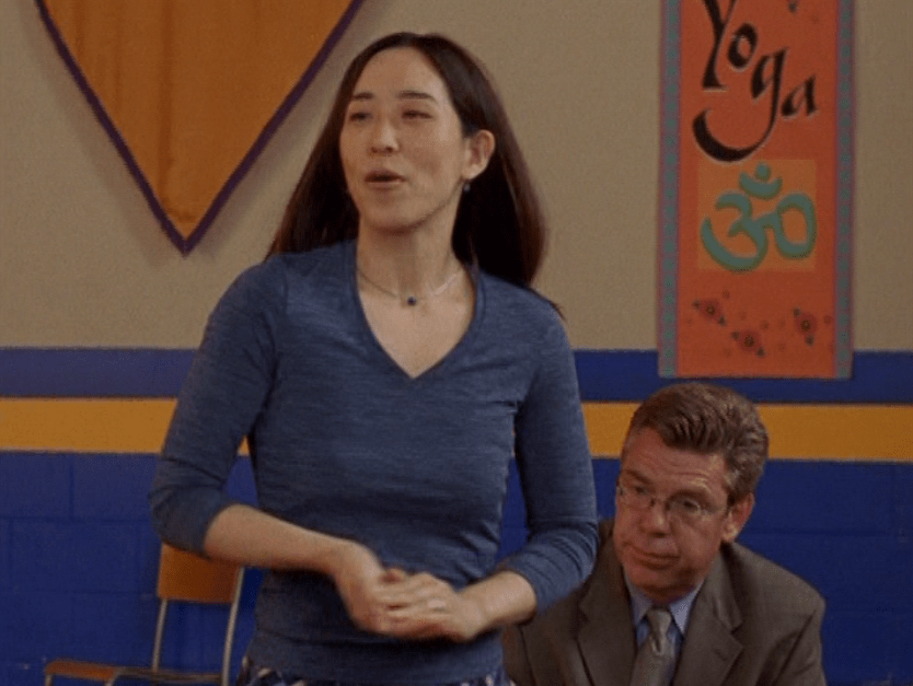Here is Kwan saying to Spinner, “You might even pass this year” in front of everyone. That is so hilarious. I mean, wtf. What an unnecessary “even”. Shut up, Kwan! She wears her hair down as well as a matching cami & cardi set which of course has already kinda phased out amongst the youngsters.