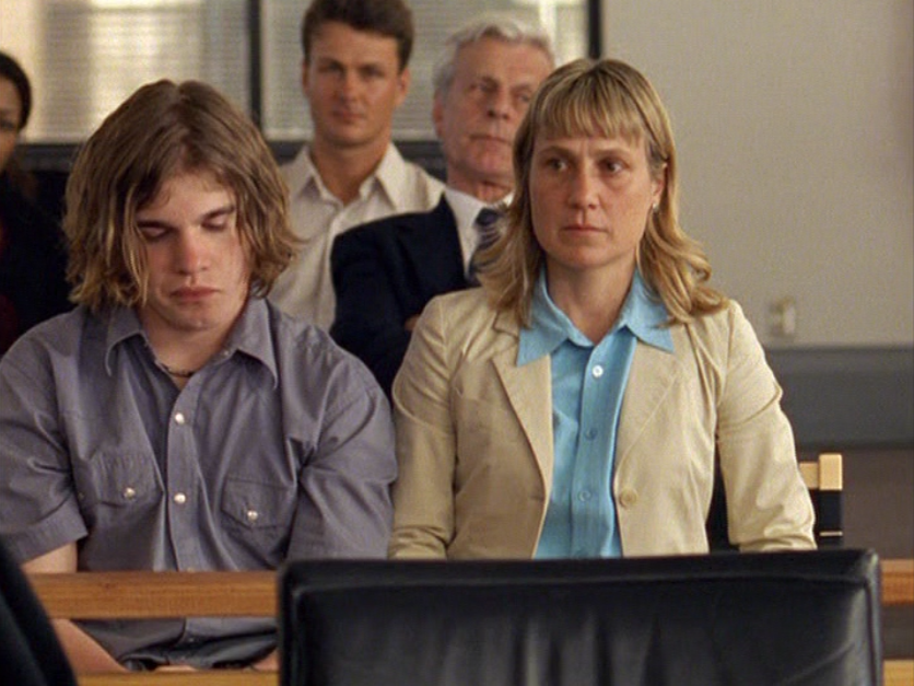 Paige’s mom appears for the first time. And doesn’t seem to have that accent that Paige used when impersonating her a while back! Oh well. She wears a khaki colored blazer, a blue blouse, dress pants, and a tiny backpack purse to court. She also has a little girl’s haircut. I don’t hate it though, I’m a fan of short bangs!