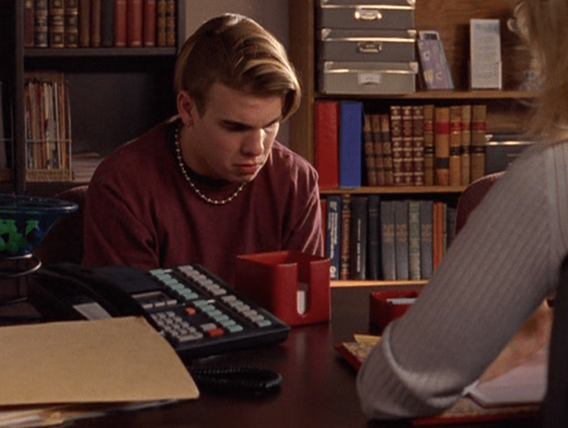 Spinner looks like such a delinquent these days. I love the hair, as you know, but he does look really untrustworthy. maybe because he is. First he’s slacking at The Dot wearing a leather bracelet and his ball bearing necklace. Next he’s “dressed up” to try to sweet talk his way back into school after getting kicked out. Shoutout to the skater belt and tongue ring. He wears a beanie to break into the school, and again appears in Hot Sauxe’s office in a red button down. Just total loser era right here.