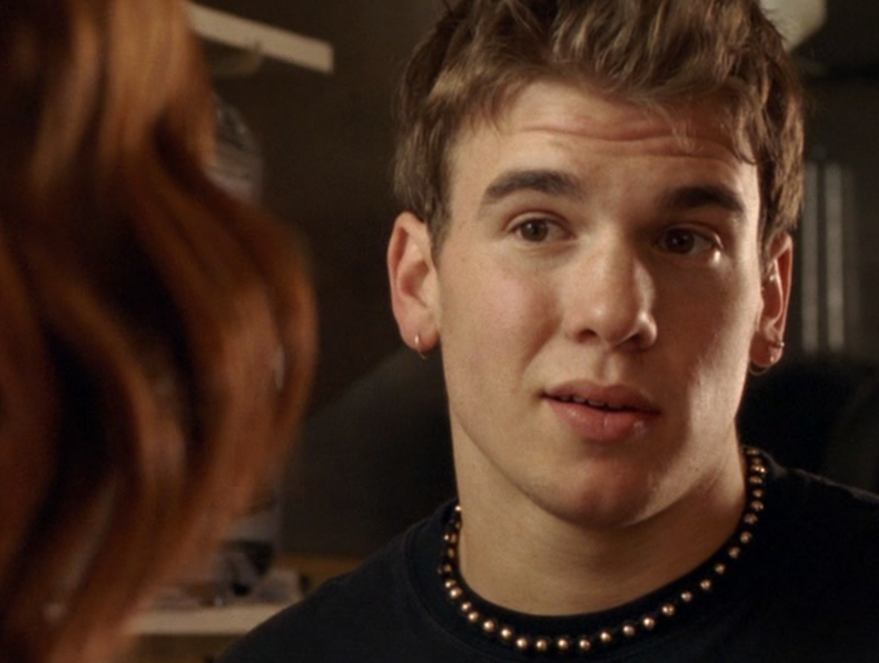 So yeah, this is where Spinner comes face to face with his guilt as Jimmy returns to school. Even though Spin is scum, this IS him looking his best for sure. His hair still slaps, and he wears tees with baggy pants including casual khakis, and that ball bearing necklace. I also got a shot of his tongue ring for your viewing pleasure. This pic of him in his basketball jersey gives me so many feelings. He looks so clammy. But also he looks so happy, in a way that I feel kinda sorry for him. But anyway, he sucks!