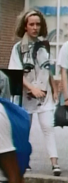 And finally, though this is the poorest of qualities, I had to catch this, because I love plaid skirts. Here Heather has matched up a plaid skirt with black leggings, shoes, and a black blazer/cardigan.
