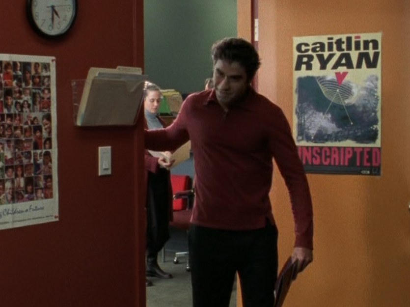 Caitlin’s slimy boss Tomas is here yet again, asking Caitlin why she couldn’t get Kevin Smith to say anything incriminating on camera. His fashion choices aren’t really noteworthy so I really don’t feel the need to lay it out for you. Men have been dressing the same since the dawn of time, what’s there to talk about? (kidding, kidding)