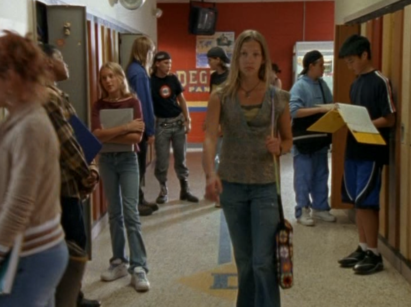 Next, a brief glimpse of casual Ellie in a PJ shirt. And at school, another ensemble I love to worship. More chunky boots. Black leggings. Mesh. And a piece that I’m like 90% sure is by Tripp NYC.