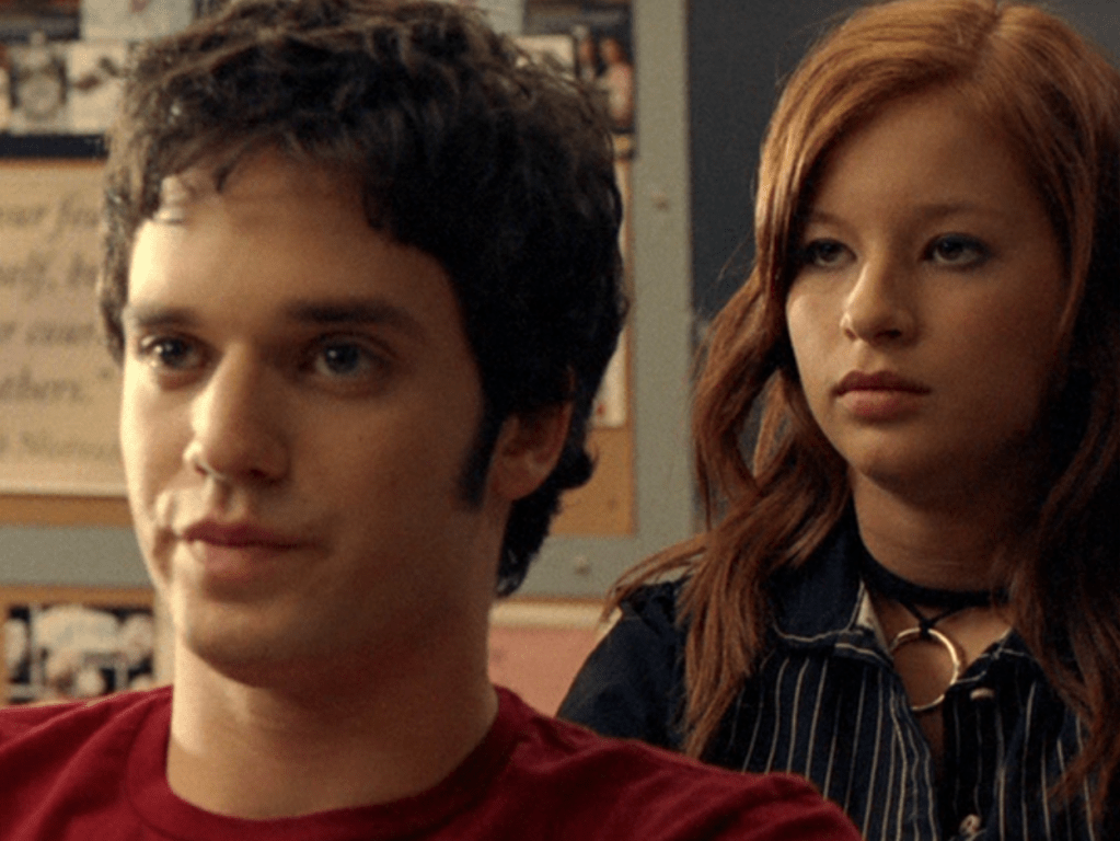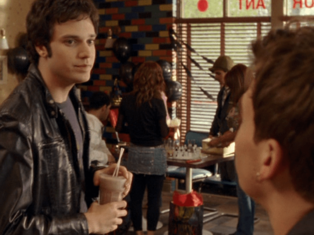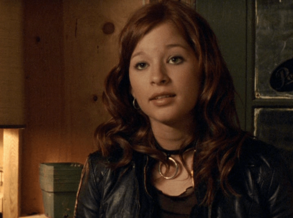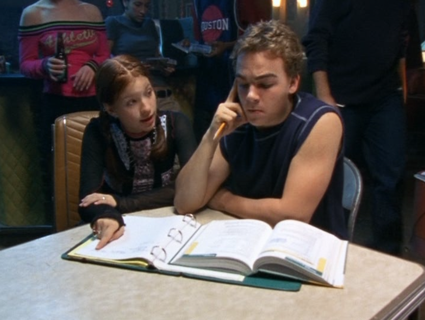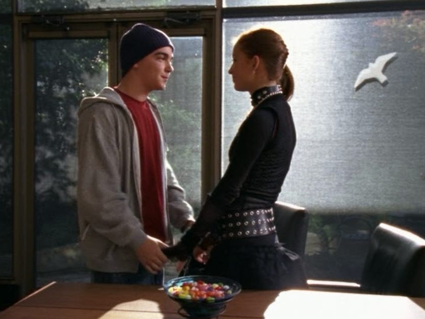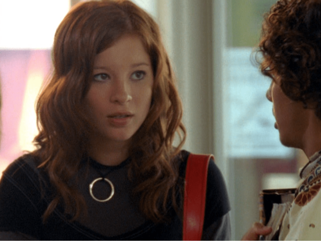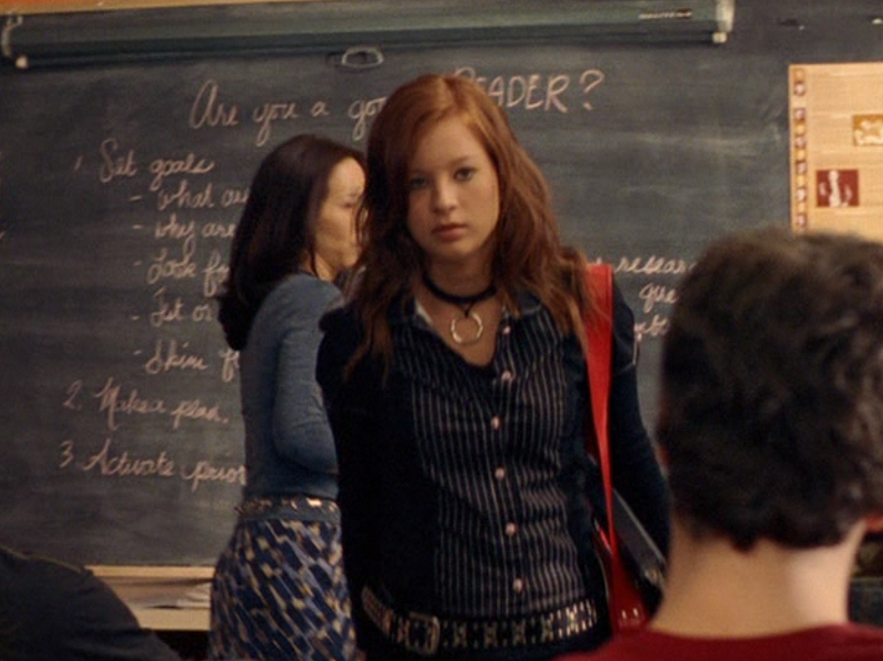 Here we are, in Ellie’s suck era. Like, she sucks. And also, as Alex once called her, she’s “a suck”. She’s traded in her crimper for a waver, she’s simping over a f*ckboy, and she’s cringily playing the drums. First she’s shown in a long sleeve shirt under short sleeve shirt under long sleeve shirt (Family Guy reference anyone?) Then we see her in her O-ring choker. And now let’s talk about THE outfit. Even though Ellie is already being drained of her style and personality at this point, I do enjoy this outfit and the *jaw drop* reveal they do of it. However I just noticed the sleeves don’t look very conducive to drumming. So what they’ve done with Ellie’s style here, is she’s basically a normie, but in darker colors. Though subtle, this dress is very cool with the off-the-shoulder sleeves, corset buttons, and ruffly layered skirt. I actually feel a bit sorry for her right here. She was so hopeful.