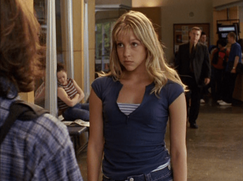 Darcy is sloooowly coming to the forefront. But for now she’s just kinda being treated like an extra. First is her picture for the dating compatibility program. She wears a tight tee with her bra strap hangin’ out. Then she’s Chester’s date for the dance. She dresses super preppy in this while polo and plaid pants. And her eyes are shooting daggers at Manny the whole time. Wow, she’s been jealous of Manny since day 1.