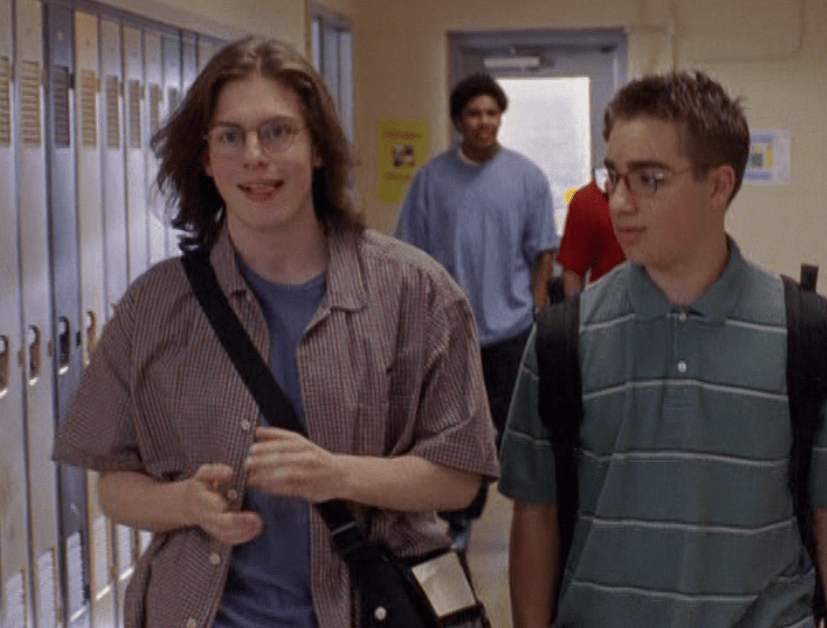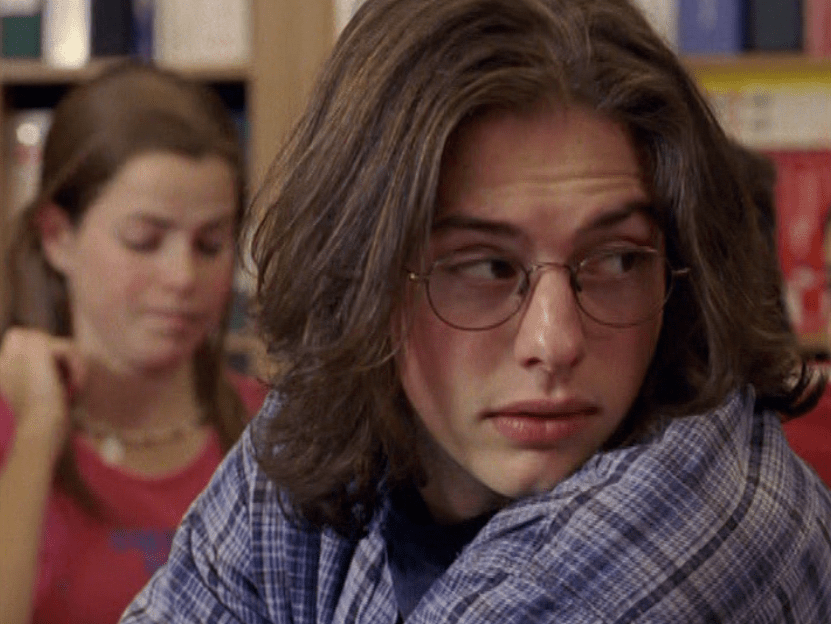 I must admit, Rick sure is hopeful. Or is a better word shameless? He’s going around really thinking he can get girls to kiss him. Um, Rick, have you not… READ THE ROOM!? He is wearing his classic look – the glasses, the messenger bag, the open shirt over a tee shirt, and the baggy pants.