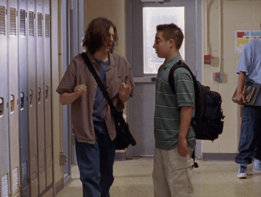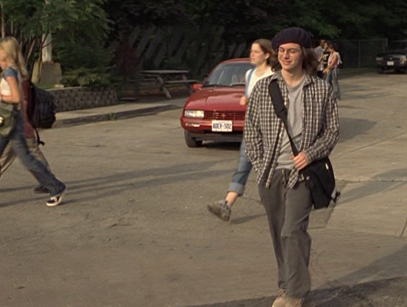 Yeouch, what a post to come back from vacation with. Sooo yeah, this is Rick before the world is changed forever. First he’s wearing a freaking beret – you may know how I feel about those – with a messenger bag and just a lot of grey. Again, STILL don’t know why he came back to Degrassi all hunky dory, and DO NOT know why he’s smiling right now. The fact he keeps crawling back to each new day thinking things are going to go differently astounds me. Next he’s in a tan shirt over a brown long sleeve and khakis. Hard to imagine he’s about to break.