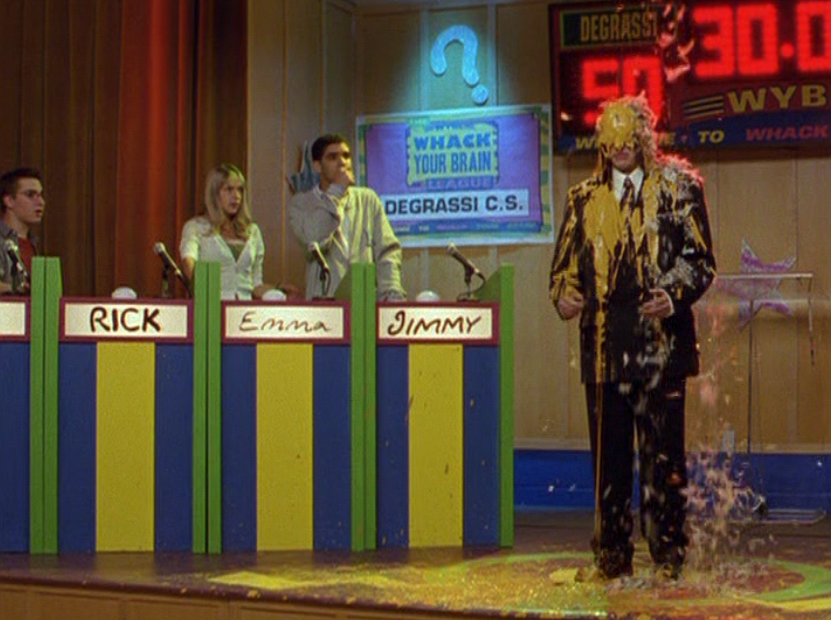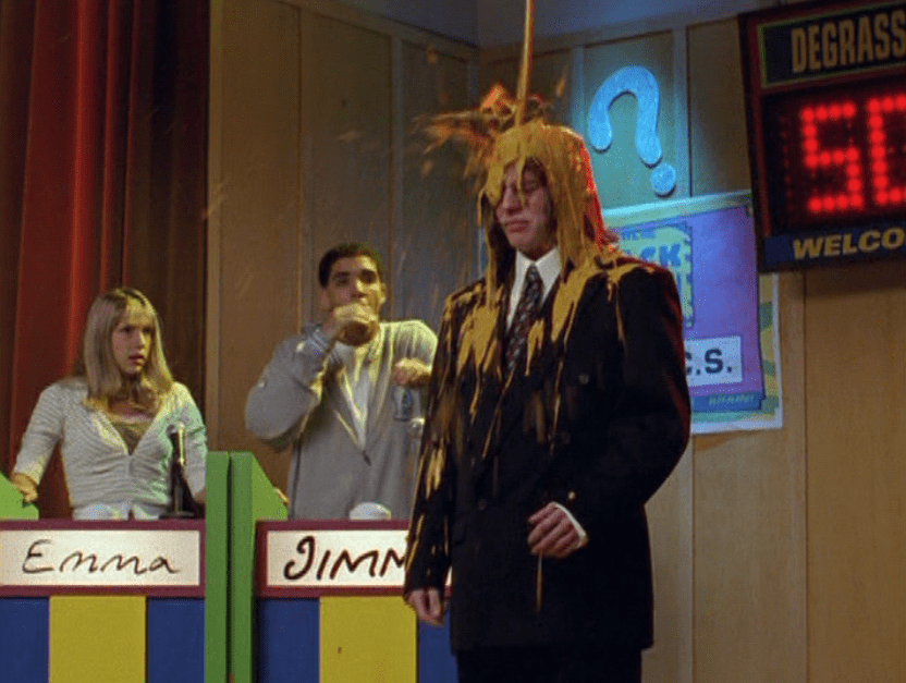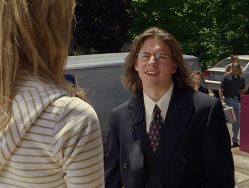 Okay, and you know what? My fashion commentary is actually appropriate here because this suit, makes me feel. I don’t know WHAT it is about him getting dressed by his mommy in this oversized, clunky, boxy navy suit that makes me want to cry. No one else is dressing up for trivia night – but this is super important to Rick so he’s dressing for it like it’s freaking church. But, he doesn’t fit well into the suit. He doesn’t really have a sense of style. The suit is like, not cute – if I recall, no one would be wearing a navy suit about this time period. But, this was his dad’s suit so it’s extra special. Damn, which makes it hurt even more when the suit gets covered with paint. But let me back track and just say, when someone dresses up for anything, I just feel kind of sad. It’s their way of wearing on the outside how they feel about something on the inside. And aside from all of Rick’s problems, both in his brain and with his social existence, he was excited about trivia and put on this giant dorky suit expecting the best. Maybe that’s why dressing up gets me – they’re expecting the best, ya know? Dressing up looks like hope, like confidence. And to see it all come crashing down, is a little sad on almost anyone. I empathize with Rick, a LITTLE, but don’t excuse anything of course.