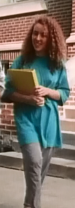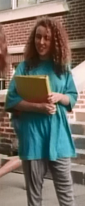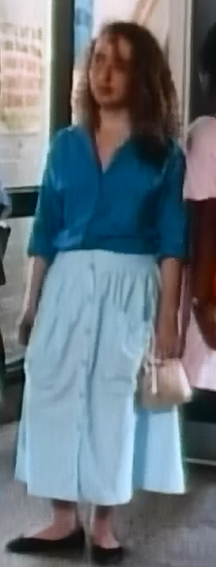 And finally, we close with Avery’s attire for Quest for the Best. I totally love this, it looks incredibly comfortable. Actually, she’s dressed a lot younger today, more like a student. Long flowy blue peasant skirt, and an oversized yellow button down. Lovely.