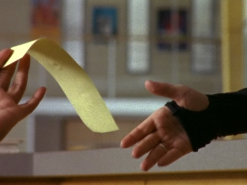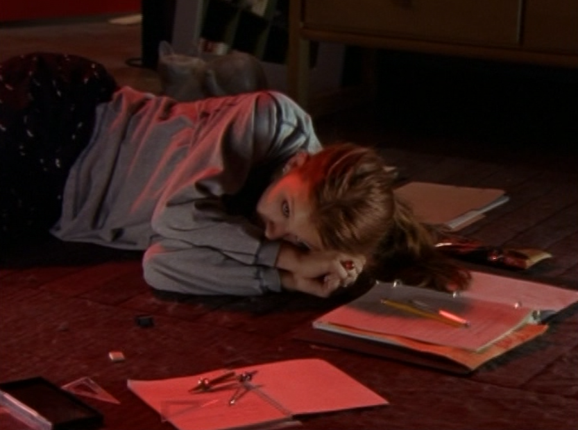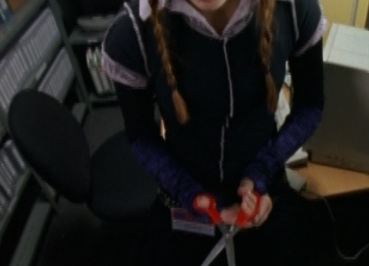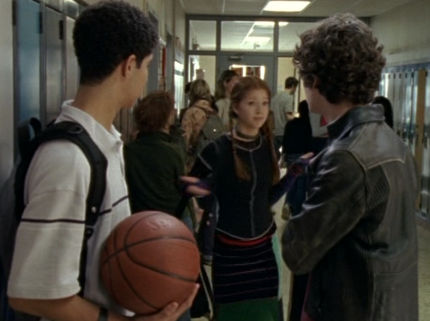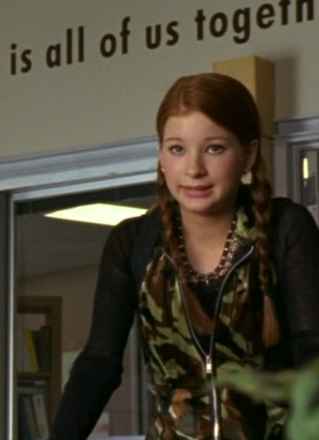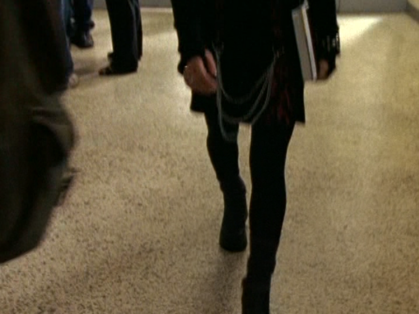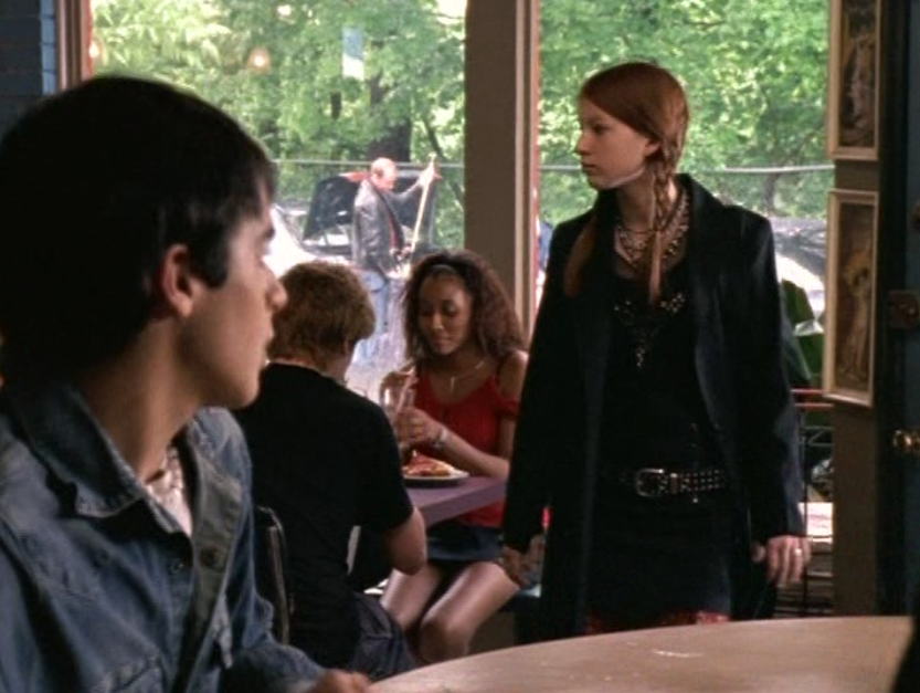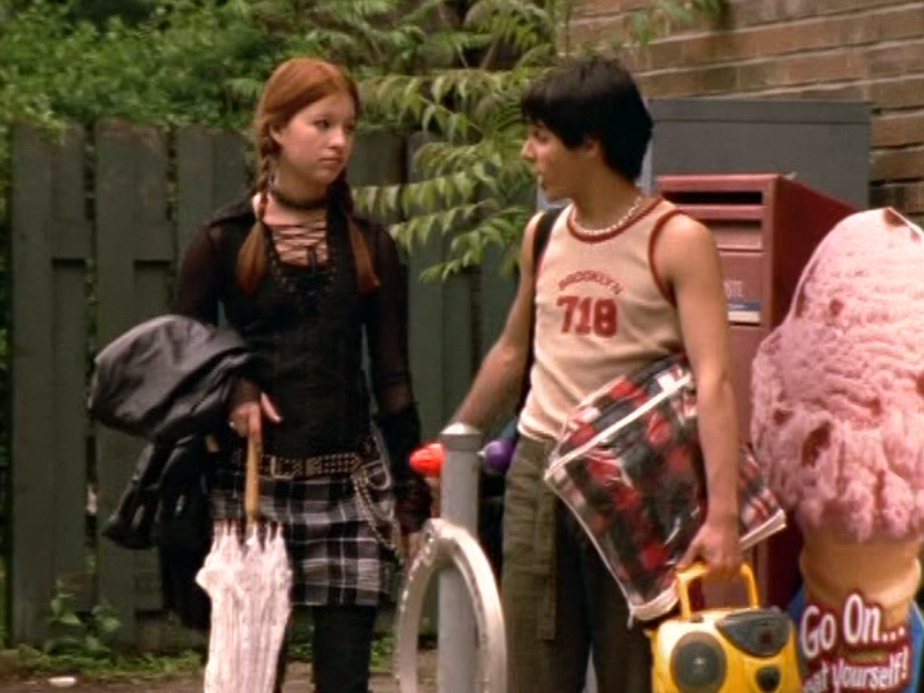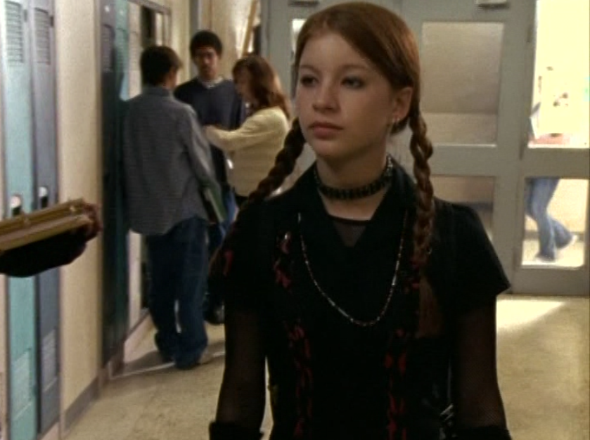 Next, a brief glimpse of casual Ellie in a PJ shirt. And at school, another ensemble I love to worship. More chunky boots. Black leggings. Mesh. And a piece that I’m like 90% sure is by Tripp NYC.