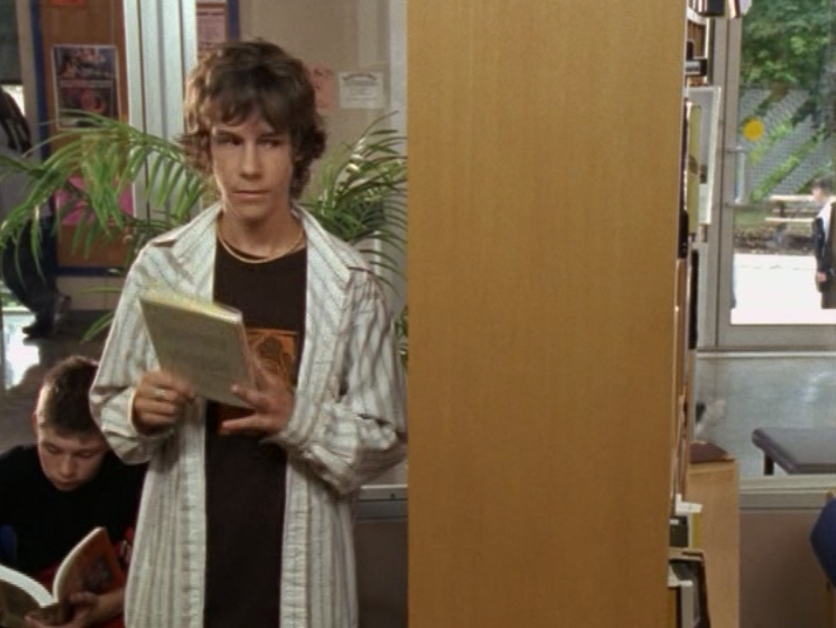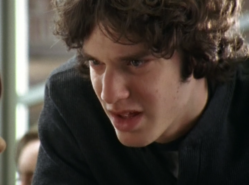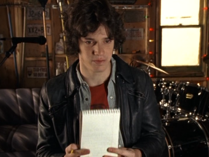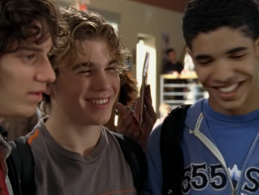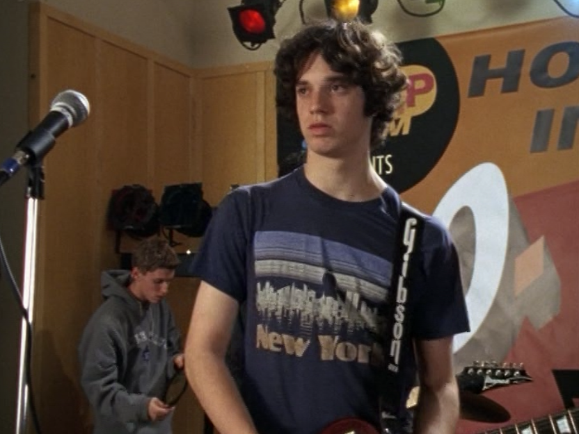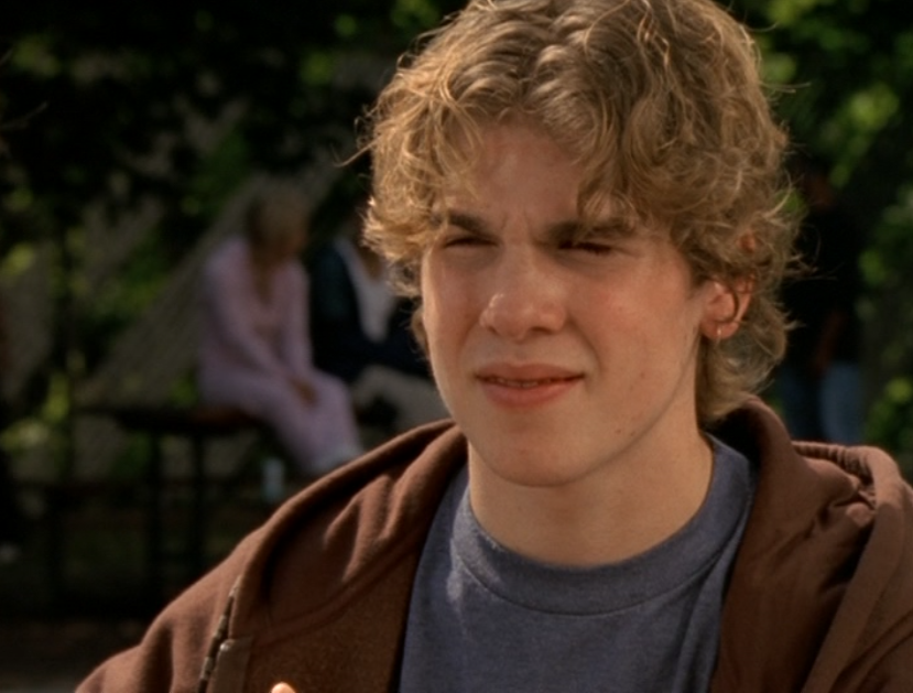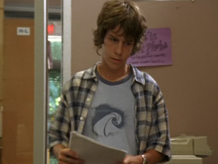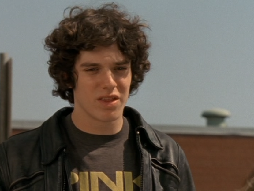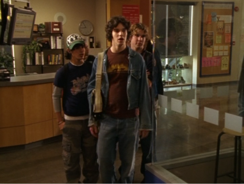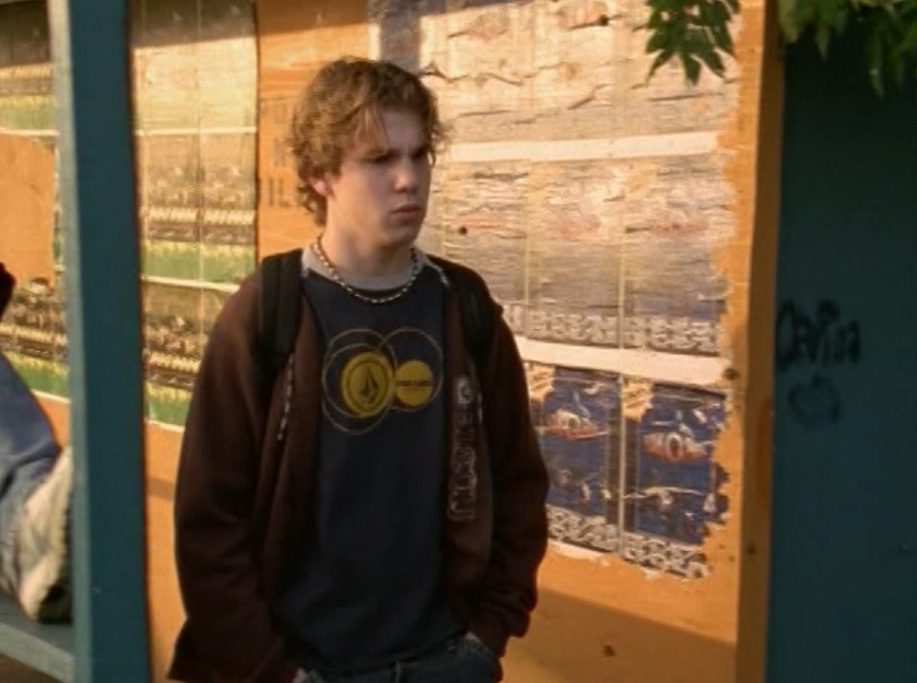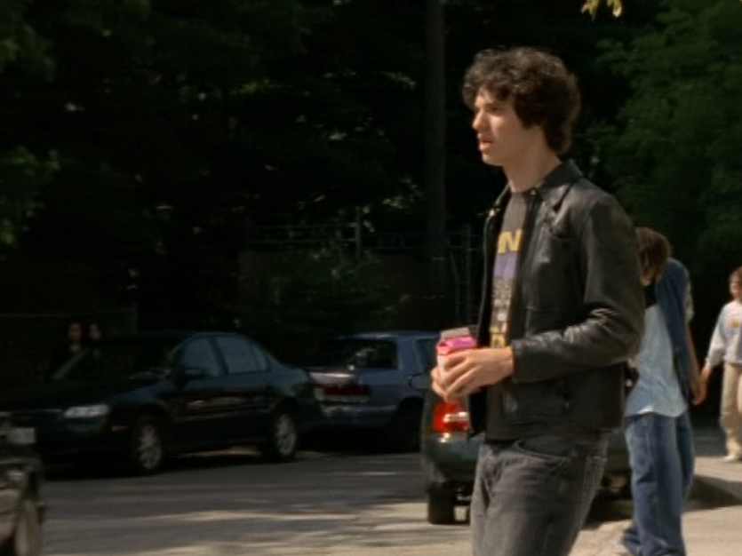 Dylan is just walking around being an effortless gay sex symbol in this ringer tee and jeans, a messenger bag draped over him. For his lesson – oops I mean, date, with Marco, he wears a grey long sleeve featuring a horizontal chest stripe, jeans, and a leather jacket. He’s lastly seen at The Dot in a zip up hoodie.